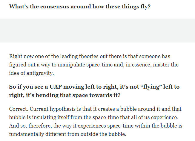 Tik Tac UFO, probably artist interpretation. They are in their space bubble, probably created by an antigravity/gravity engine: